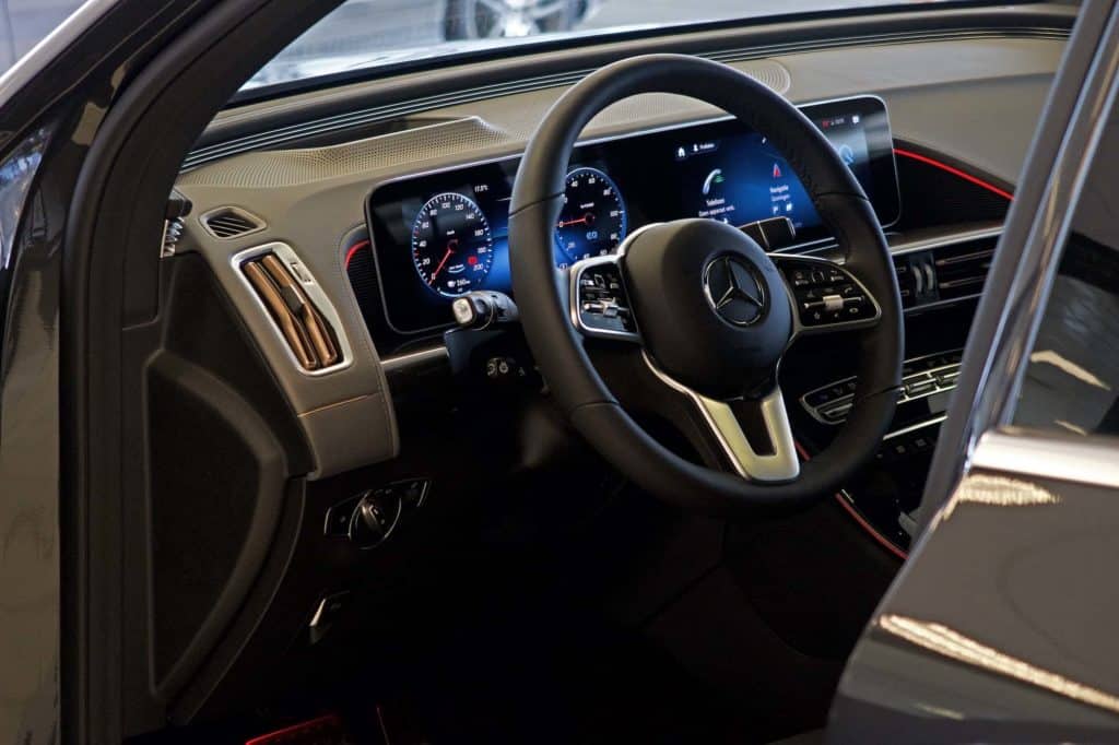 Onze ECQ 400 4MATIC – die we in 2019 bestelden – werd in februari 2020 afgeleverd met al de juiste opties. AMG interieur én exterieur, rijassistentiepakket plus, Premium Plus pakket, schuifdak, stoelverwarming voor- en achterin, aluminiumlook treeplanken en verwarmd stuur; de lijst gáát maar door. Enfin, kijkt u zelf maar naar de foto’s van onze EQC hieronder.